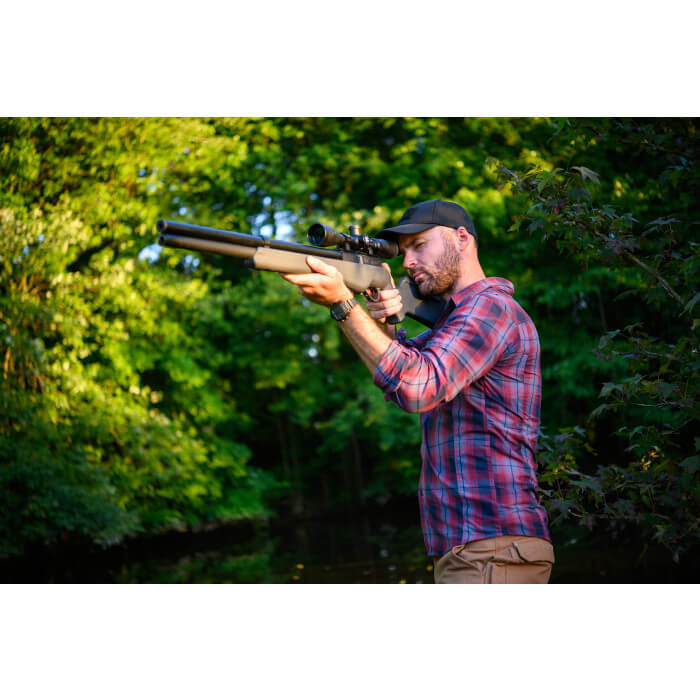 This item does not include a hand pump or other filling source but does have the Every-Pressure Tank System. The Umarex Origin has been the first step into the world of pre-charged pneumatic shooting for many shooters. It's also the ideal air rifle to keep on hand for survival and prepping.