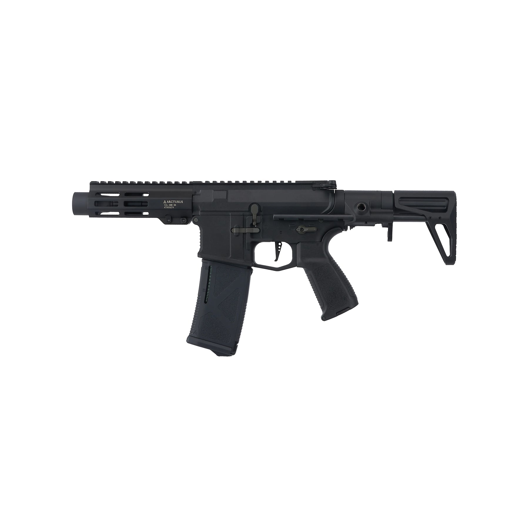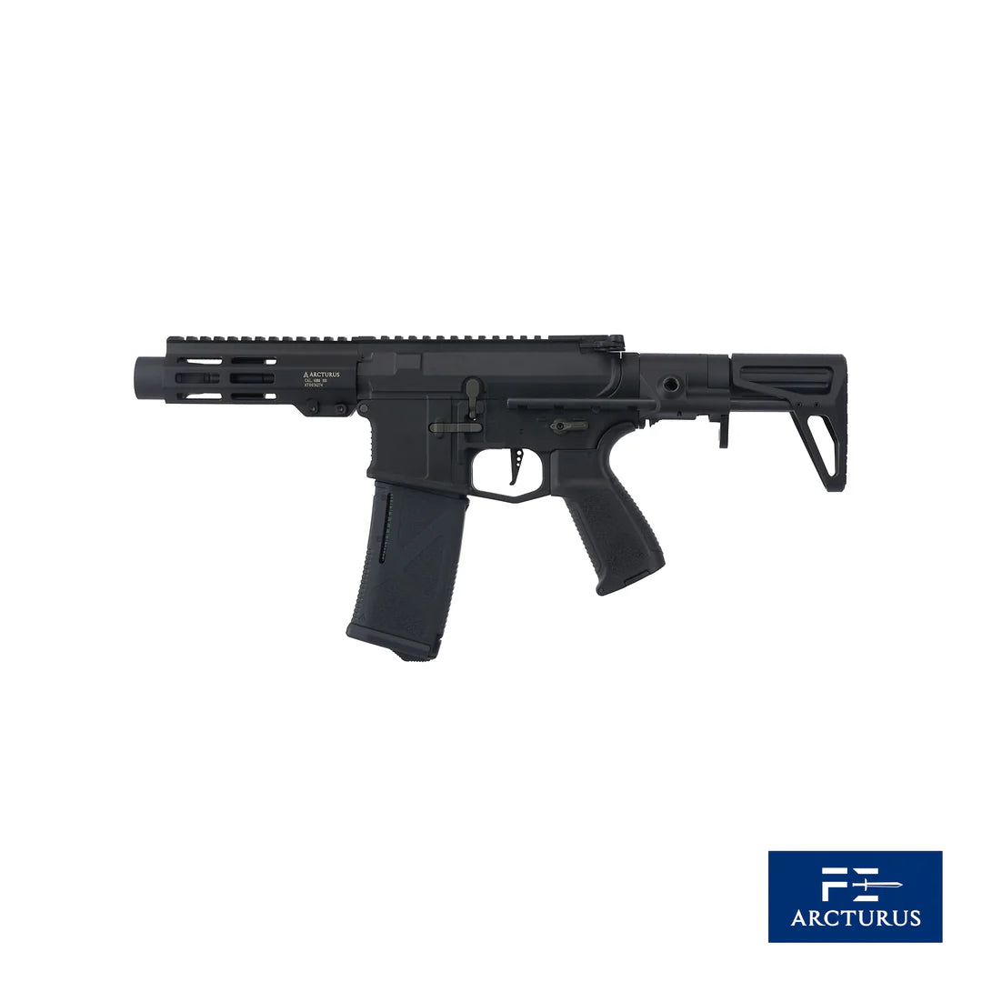 ARCTURUS Karambit® MOD1 PDW 5.5" AEG LITE FE™ (Feature Enhanced) AEG is latest NY series offering in 2024 with an all new V2 FE ETU (programmable firing modes, 3rd burst, binary), 23TPA bonded neodymium motor and ARCTURUS designed furniture/magazine with improved polymer. NY06 series features fully ambidextrous controls and receivers with metal inserts for improved strength and rebuildability.