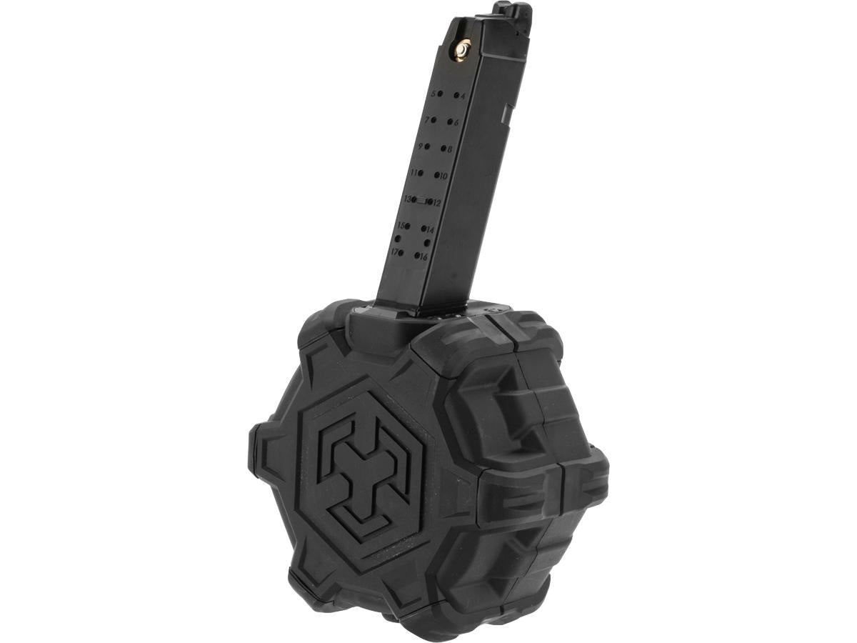 - Provides more firepower than standard extended magazines