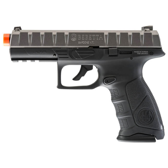The Beretta APX CO2 Blowback airsoft pistol is another addition to our expansive line of authentic replicas, featuring officially licensed Beretta trademarks, snappy CO2 blowback action, two 15-round CO2 magazines, and fixed sights. The unique design helps you stand out from the crowd. The high-performance components help you out-shoot the crowd.