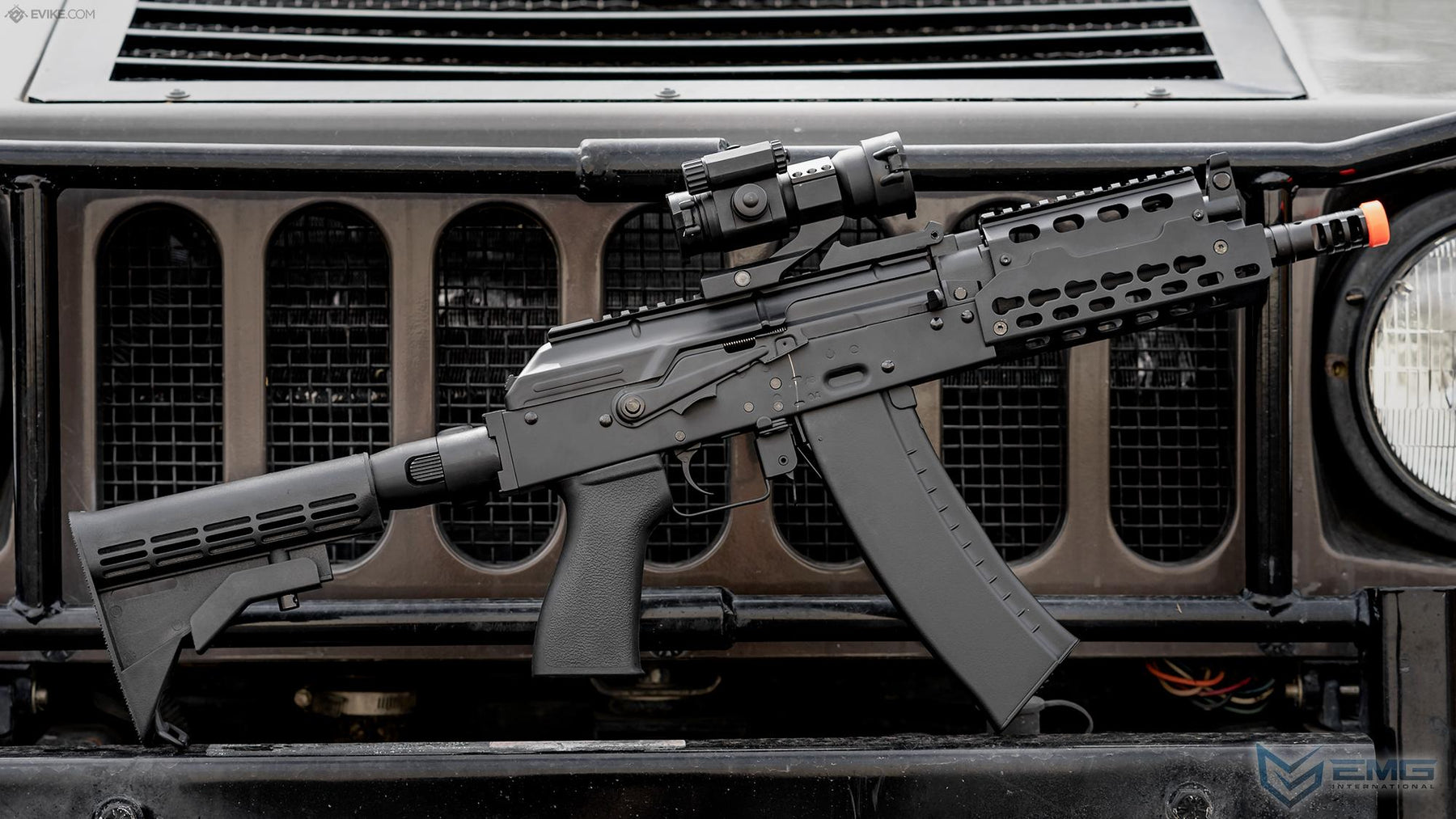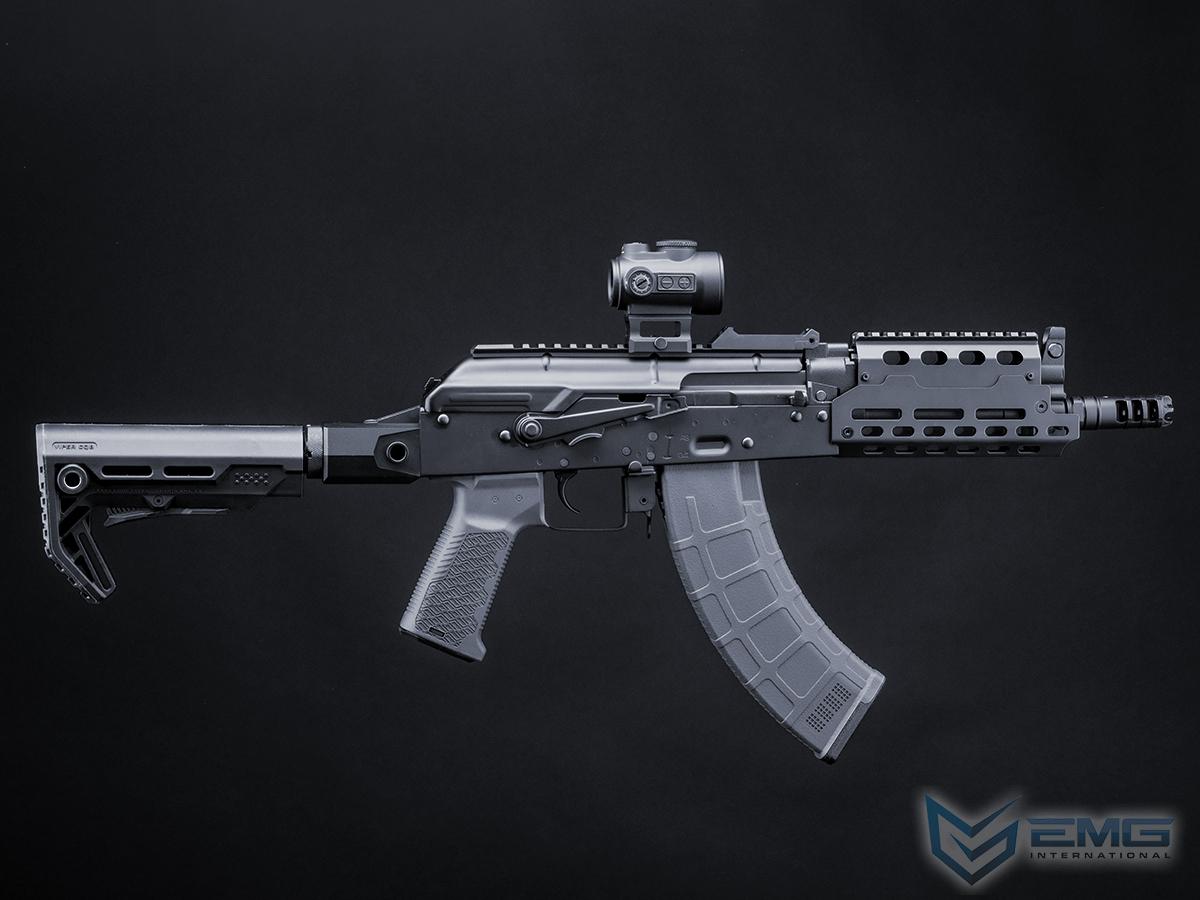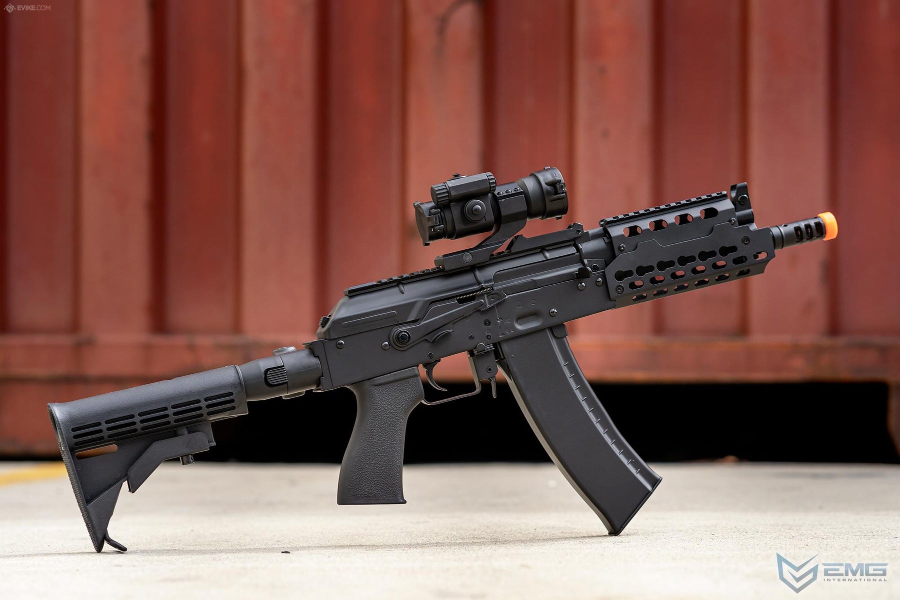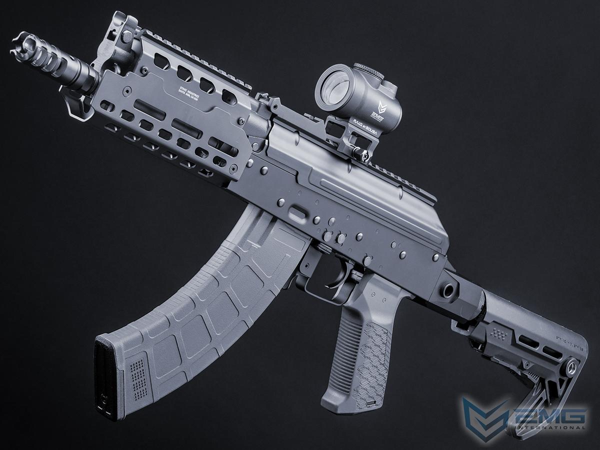 EMG Strike Industries TRAX AK74 Stamped Steel Airsoft AEG Rifle w/ Folding Buffer Tube Stock (Model: CQB / Black)