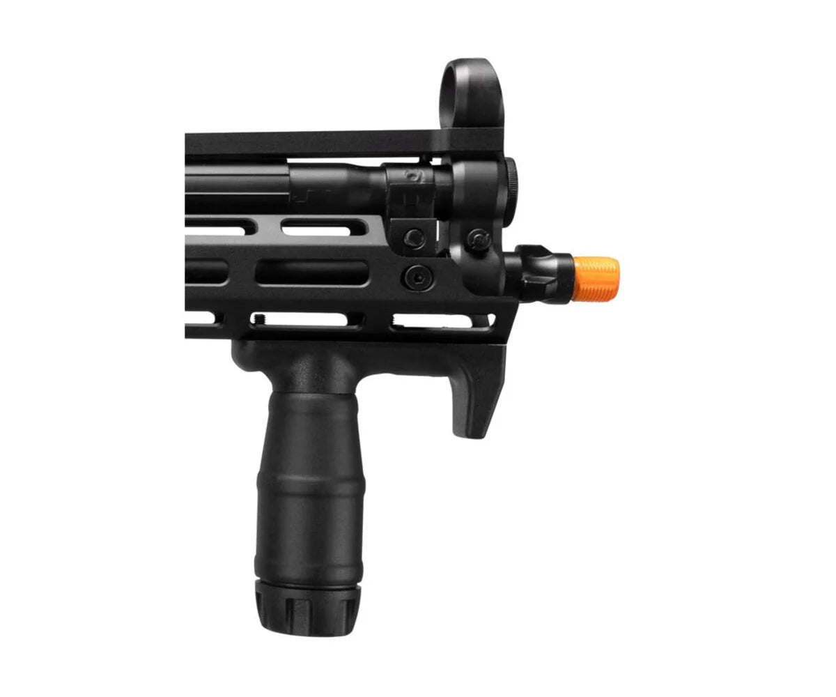 Level up with the HK MP5 Gen 2 EyeTrace Elite. With full metal construction, M-LOK hand guard, Smart LED Mosfet, and built in EyeTrace tracer unit, this MP5 will perform day or night. This MP5 sends .20g BBs downrange at 380 FPS courtesy of a robust piston assembly augmented by a metal gear set. The muzzle has 14mm CCW threads and the upper is topped with HK style sights. This MP5 accepts standard Elite Force MP5 magazines. We recommend 9.6-11.1v NiMH stick batteries with a capacity of 1200MaH and a discharge rate of 20C.