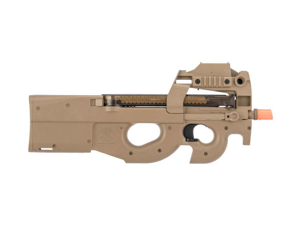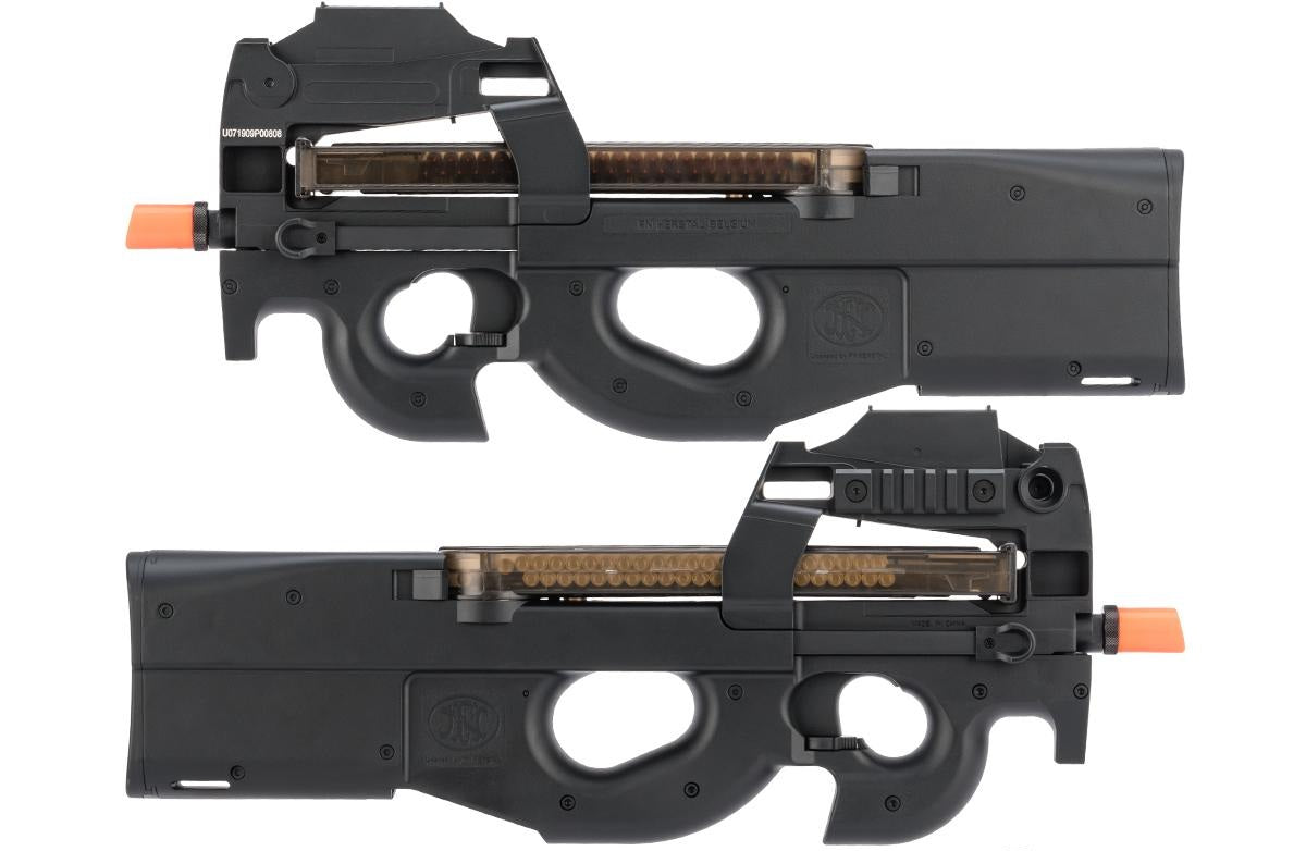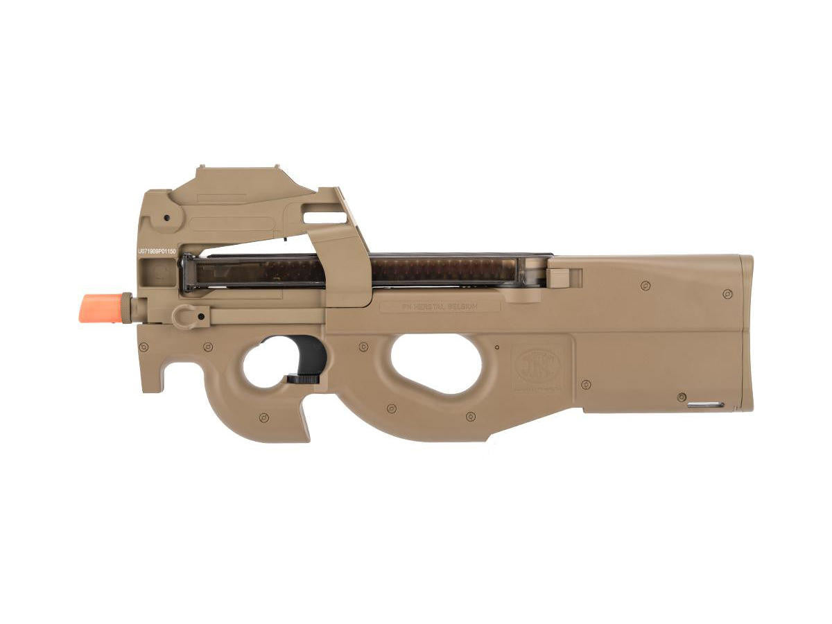 The FN Licensed Airsoft P90 accurately replicates the great handling and ergonomics of the real P90 with its fully ambidextrous control layout and comfortable grip. Just like the actual P90, the FN Licensed Airsoft replica consists of a durable reinforced polymer frame with metal barrel and upper assembly. Despite its small size, the P90s bullpup design allows for a considerably longer barrel than most sub-machine gun class weapons for improved range and accuracy. Fast, lightweight, and compact, the P90 is one of the most effective weapons for CQB and room clearing.