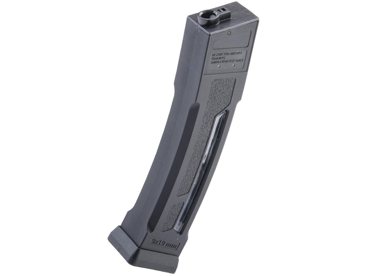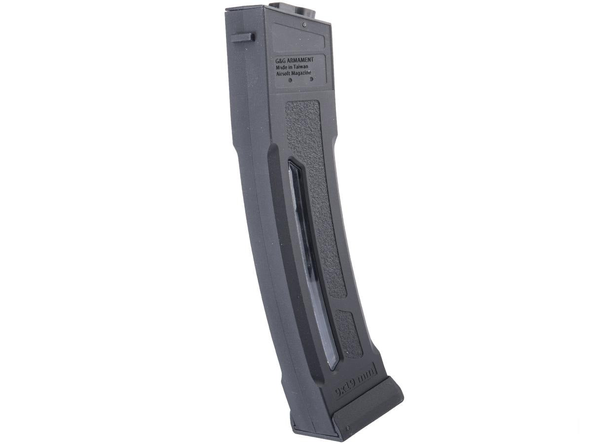 Length: 205mm x 40mm x 30mmWeight: 170gCapacity: 130 RoundsCompatibility: G&G MXC 9 Airsoft AEGsMaterials: Injection molded polymer