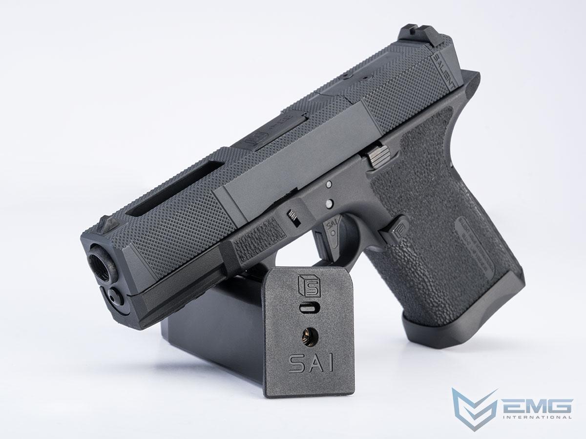 EMG has furthered their collaboration with Salient Arms International with the long awaited EMG BLU. The newest iteration to the BLU line of pistols features an updated brass backstrap and magazine release, mimic these same features of the real BLU. Designed closely with the geniuses at SAI, the EMG / SAI BLU is designed to be as close to the real thing as possible offering shooters and enthusiasts the most realistic training analog available. Featuring a durable polymer frame, machined aluminum slide and barrel assembly and brass backstraps and magazine release, the EMG / SAI BLU not only looks like its real deal cousin, it feels like it as well. Authentic rollmarks and branding top off the look, making it almost impossible to differentiate the 6mm version, from the 9mm version.