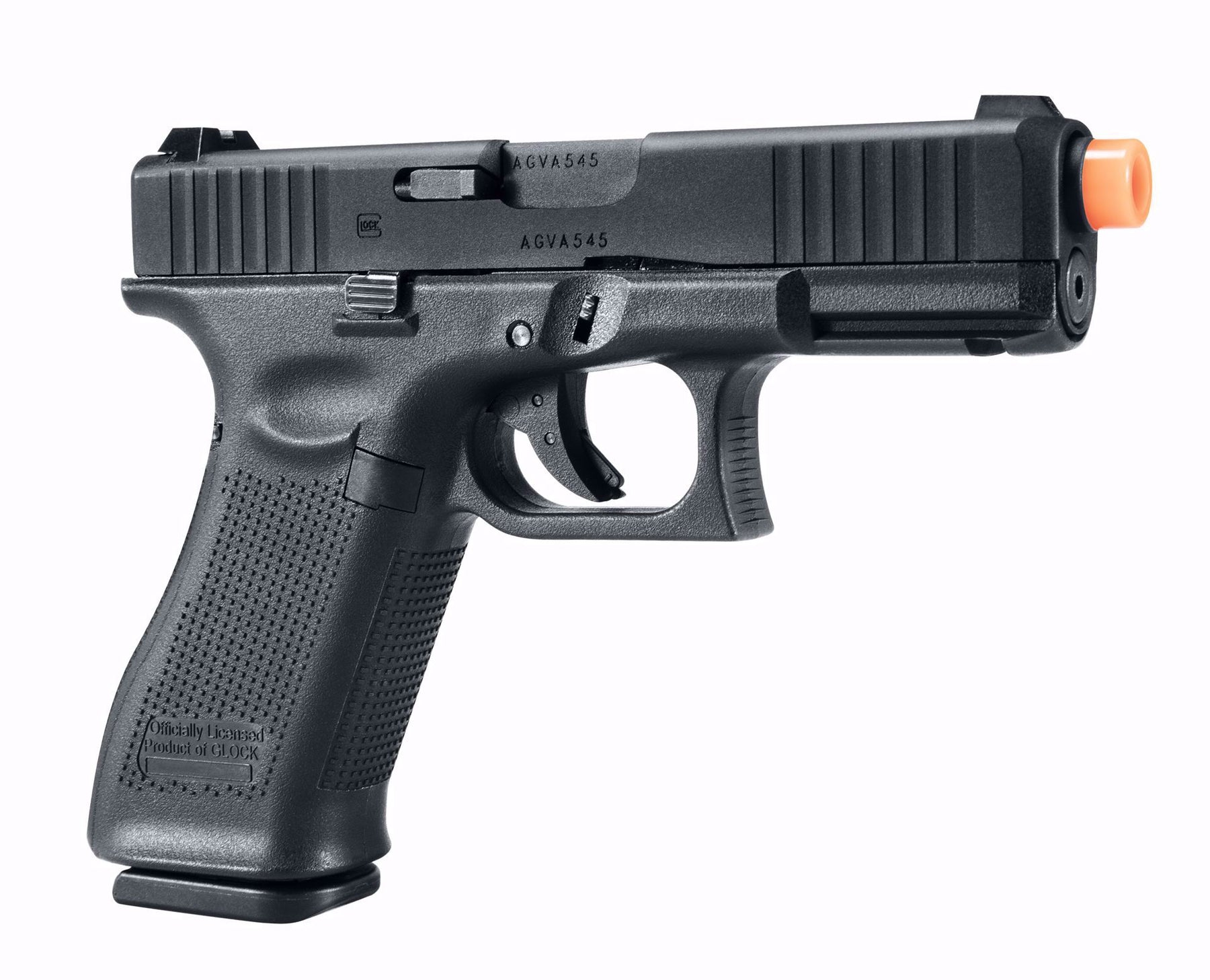 This GLOCK 45 is the perfect combination of compact slide length, Gen 5 features, Model 17 magazine capacity and now MOS plate compatible slide so you can mount up your favorite micro reflex sight. The GLOCK 45 with MOS (Modular Optic System) optic plate mount is powered by green gas and compatible with existing magazine SKU numbers (GBB) 2276347 and (CO2) 2276348. With full blowback operation, this GBB launches .20 gram BBs at 300 FPS and has an ambi slide stop, and reversible mag release. With MOS optic plate kit SKU number 2211388, you can mount the micro pistol optic of your choice to the slide of this GLOCK 17 Gen 5 MOS.