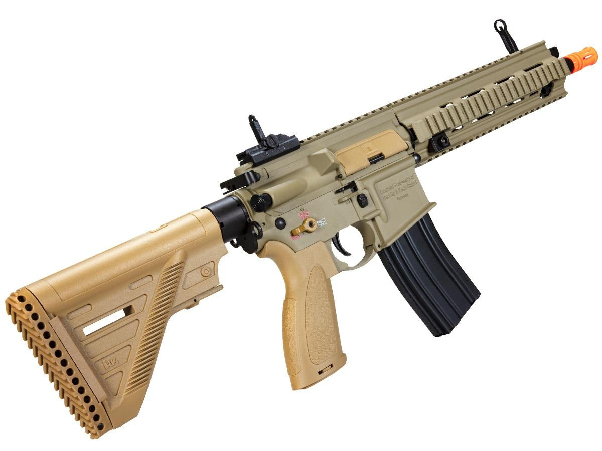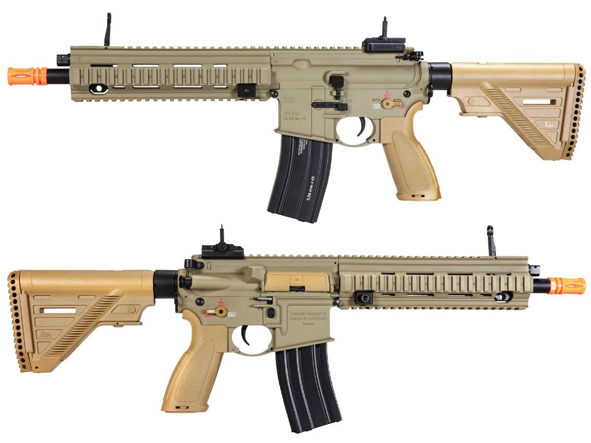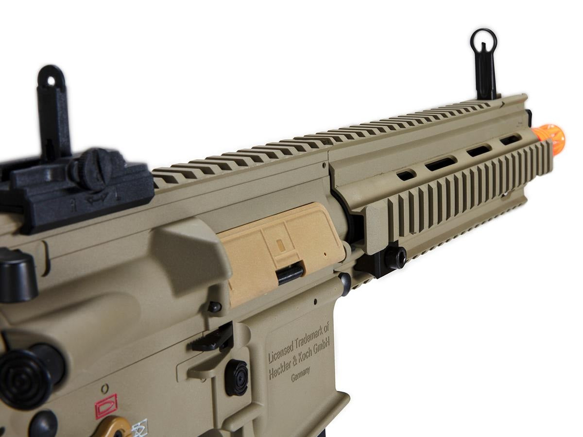 Elite Force Airsoft continues to bring the hottest licensed replicas to the airsoft field and the Heckler & Koch 416 A5 Competition in FDE is no exception. It's all in the details and the details are as follows: Oversized and ambidextrous bolt release, flared magwell, 6 position adjustable A5 stock, flip-up front and rear sights, ergonomic HK grip, quadrail forend, adjustable hop-up, ambidextrous sling mount end plate and that's just the major stuff. Fit and finish is top notch for this AEG (battery not included). Recommended Battery: 11.1 V lipo battery (20C/1200mAh).