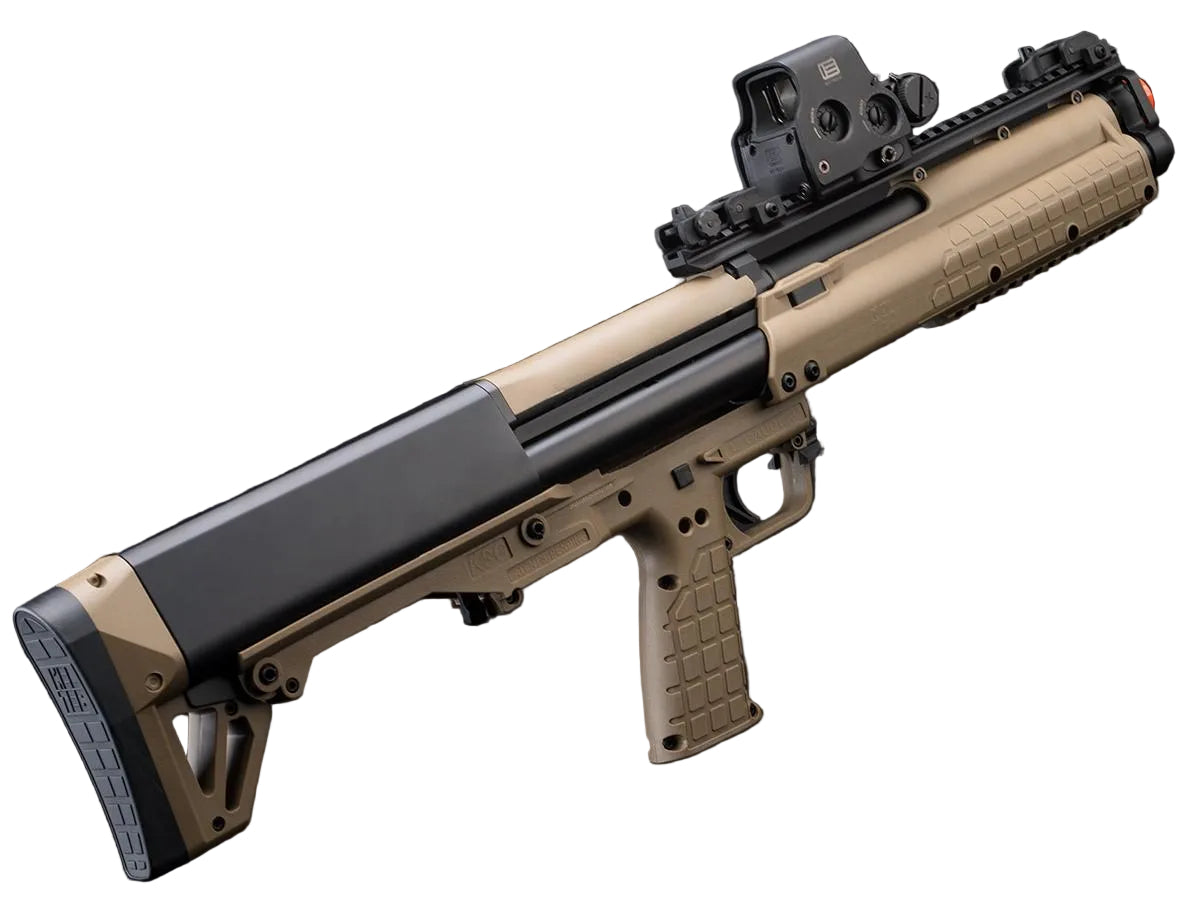 In 2011, KelTec introduced the world to the KSG and completely changed the world of tactical, pump-action shotguns. A dual tubed downward-ejecting bullpup shotgun that was also completely ambidextrous. Featuring up to 14+1 shell capacity in a 26.1 inch package and a easy-to-switch tab to swap between tubes, the KSG had quickly gained a reputation for being unique and one of the easiest shotguns to "reload" in the market.