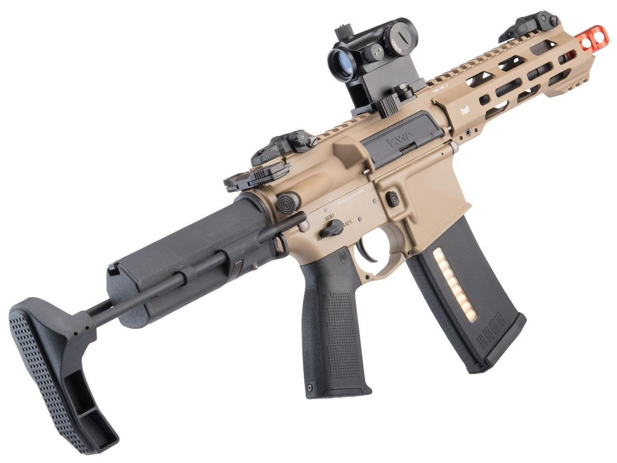 The next generation of variable FPS Ronin AEGs have arrived. KWA’s upgraded VM4 AEG 2.5 gearbox are now drop-in trigger ready allowing users to employ their favorite MOSFETs or electronic triggers to maximize weapon performance. The Ronin T6 PDW is stacked with features derived from extensive user feedback; from the redesigned MLOK handguards, improved PDW stock, ambidextrous charging handle and KWA’s brand new SOCOM-style muzzle brake, the T6 is once again ready to dominate the playing field.