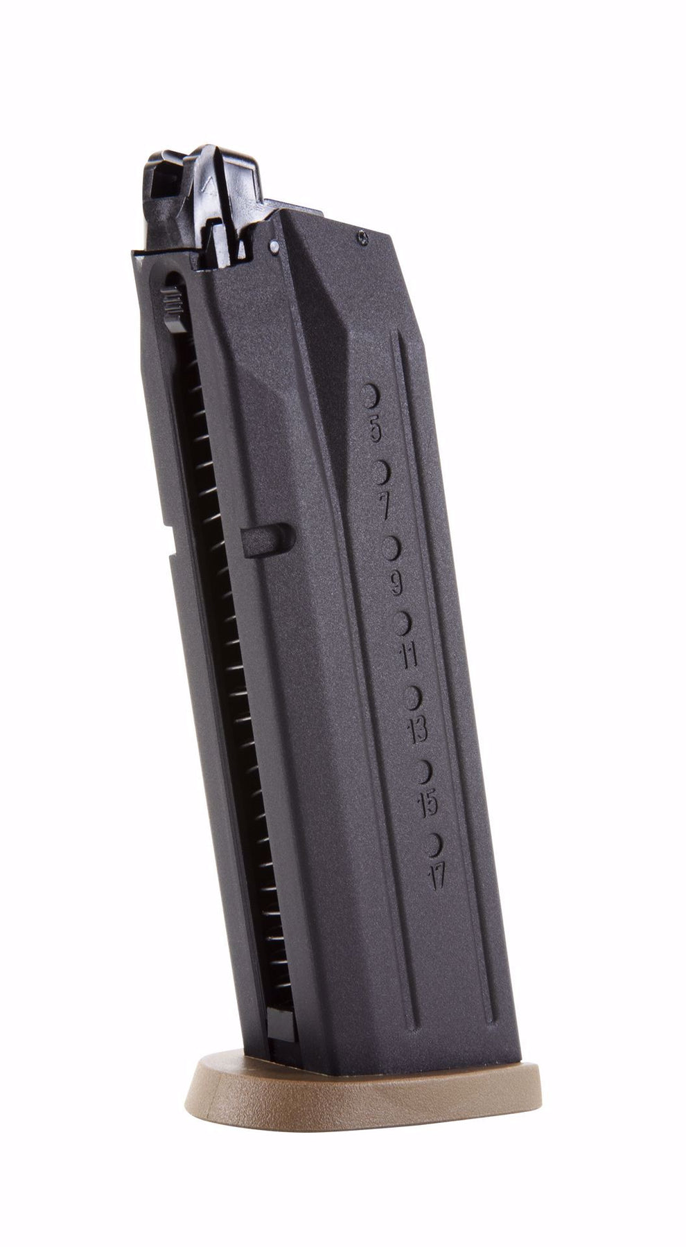With full blowback slide action this Smith & Wesson M&P 9 airsoft pistol is powered by green gas such as Elite Force Fuel. This single action pistol comes with a 23-round airsoft magazine and shoots at 310 fps. This airsoft handgun is VFC made for Umarex and Elite Force.