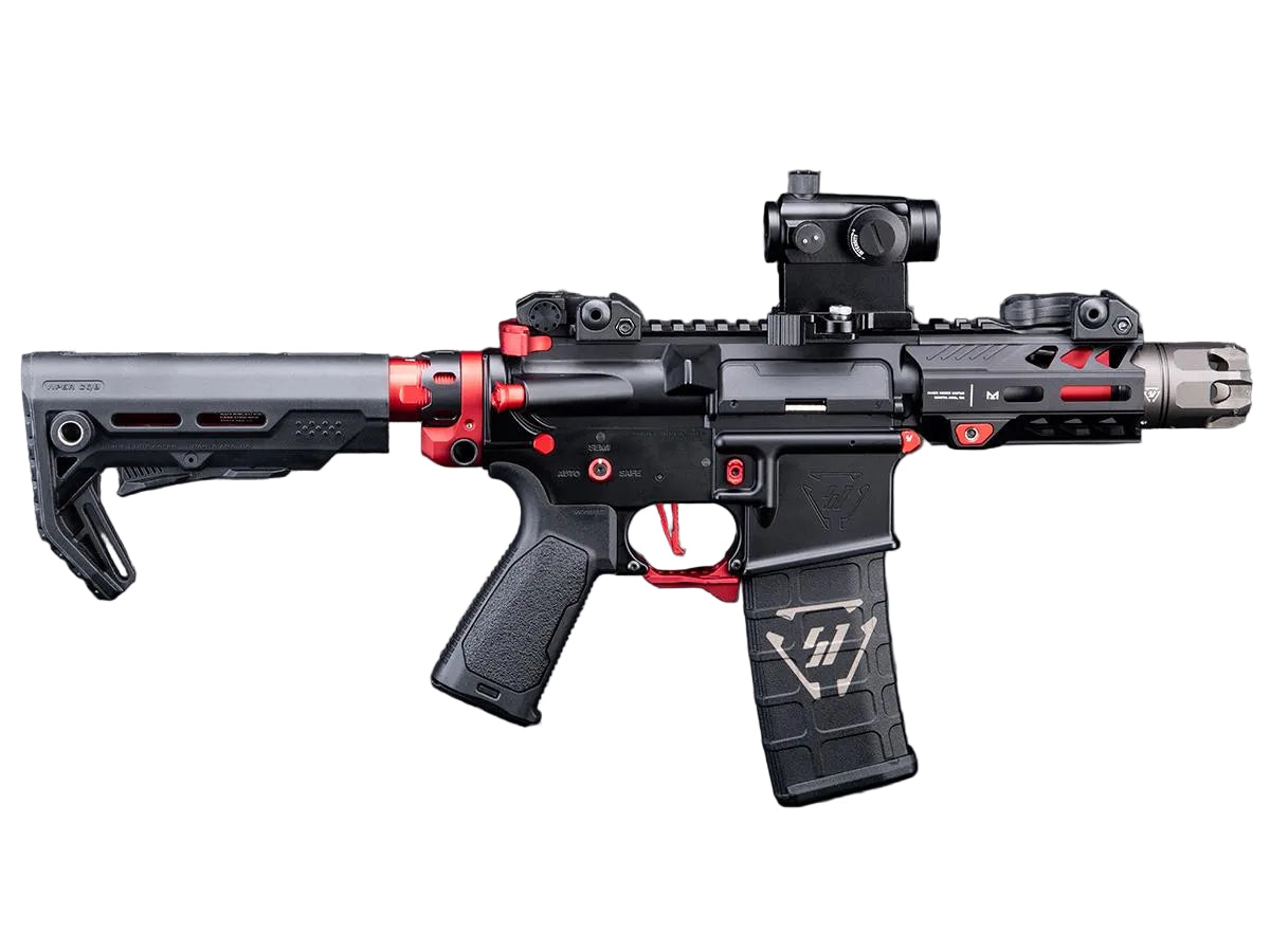 The EMG Strike Industries Tactical Competition Rifle series of airsoft rifles is a combination of every one of Strike Industries' best aftermarket parts. Highly customizable but ready to go out of the box, these rifles come in three different sizes to suit whatever situation you find yourself in. The high-quality full metal construction combined with a GATE Aster upgraded ver2 gearbox gives this AEG incredible out of the box performance with the looks to match. On top of that, it's been equipped with a full suite of external parts to give you options on how you want to run it. The Tactical Competition Rifle is the perfect solution for anybody seeking a high-end gas blowback M4.ASTER V2 is a younger brother of well-known TITAN V2. This world's first 4th generation AEG Control System is destined for V2 gearboxes (including stock, low- and mid-tuned) and even for high-tuned guns (in case of EXPERT firmware).Transform your AEG by replacing trigger contacts with computerized controller equipped with innovative optical sensors. Gain a unique tactical advantage thanks to the extremely fast trigger response and lots of other useful functions. ASTER's smart fuse protects your AEGs battery, motor and the controller, even in case of reverse battery connection. This feature, along with the optical sensors, makes ASTER the most durable drop-in unit on the market. You choose how to configure ASTER - simply via trigger or through USB-Link / Blu-Link* and our advanced GCS app. To enjoy full potential of ASTER, you can upgrade its firmware to ADVANCED or EXPERT.