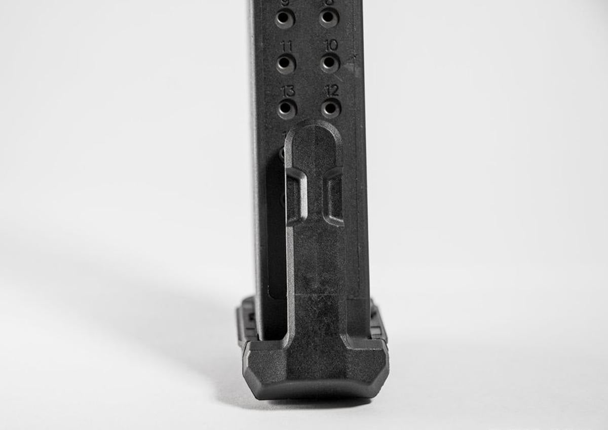 The GLOCK Magazine Base Plate System allows you to attach multiple accessories such a clip, rail, as well as an enhanced base plate.