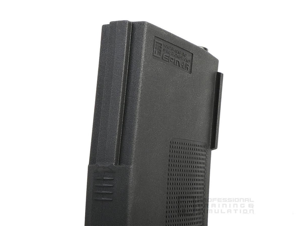 PTS EPM-LR AEG is a 7.62x51 NATO style magazine for Airsoft SR25/M110 (AEG) pattern rifles featuring 150-round Mid-cap, constant-curve body. It's compatible with G&P SR25/XM110 (AEG), and similarly compatible airsoft SR25 AEGs. The magazine is available in Black.