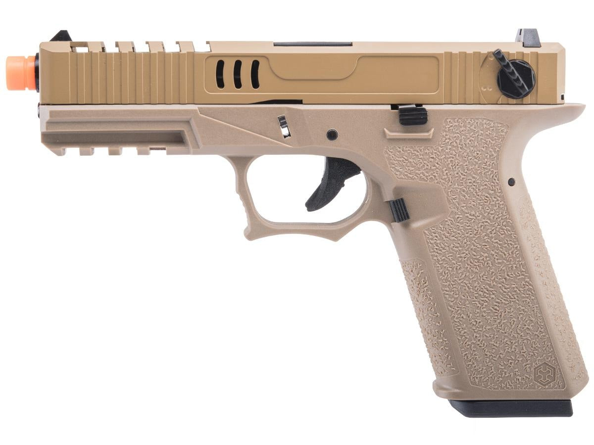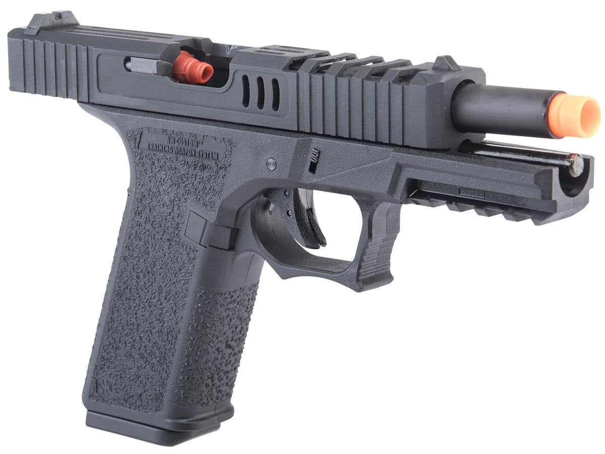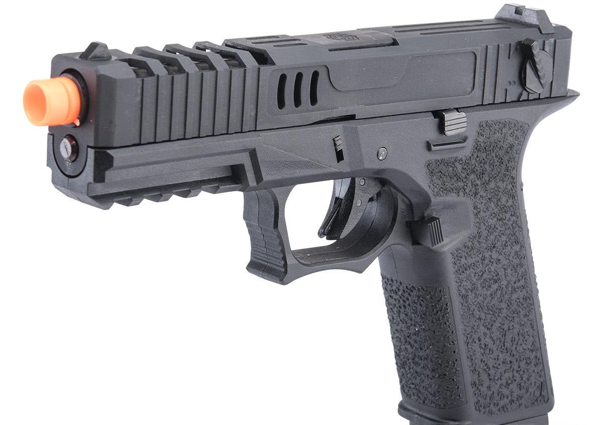 AW Custom is proud to announce the VX8 Series Pistols, a new range for the VX Series with a Full Auto feature. Featuring a lightweight polymer frame with a stippling textured grip, the series comes with a choice of three styles of serrated slides.