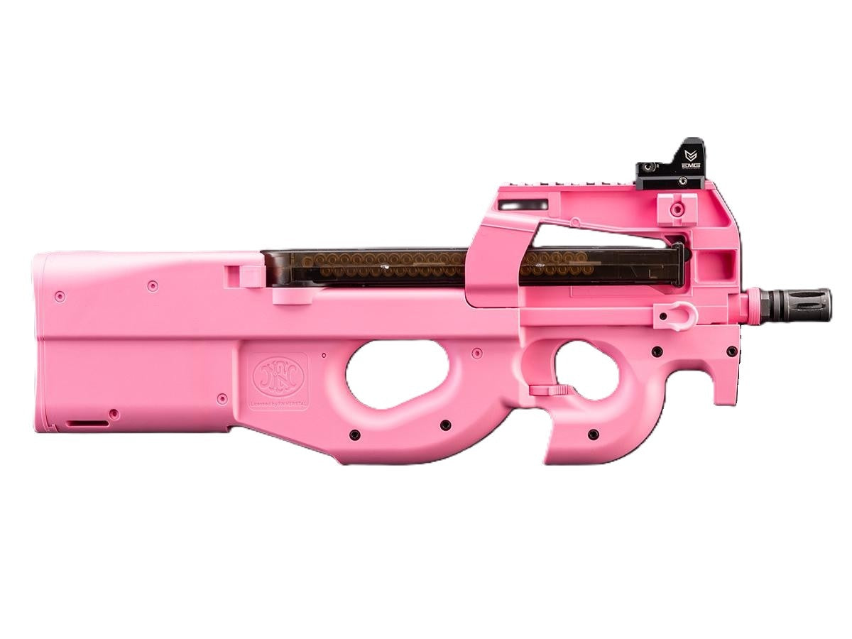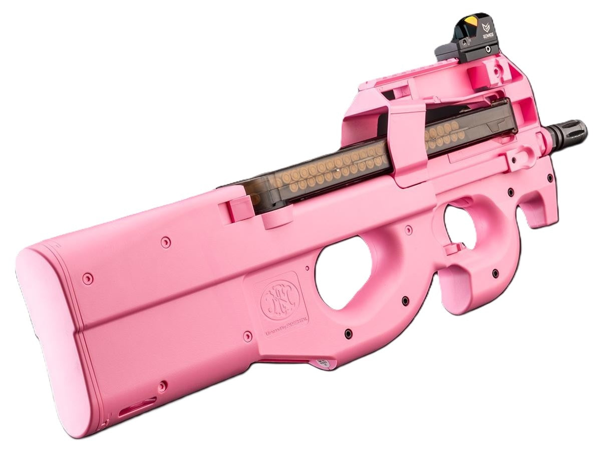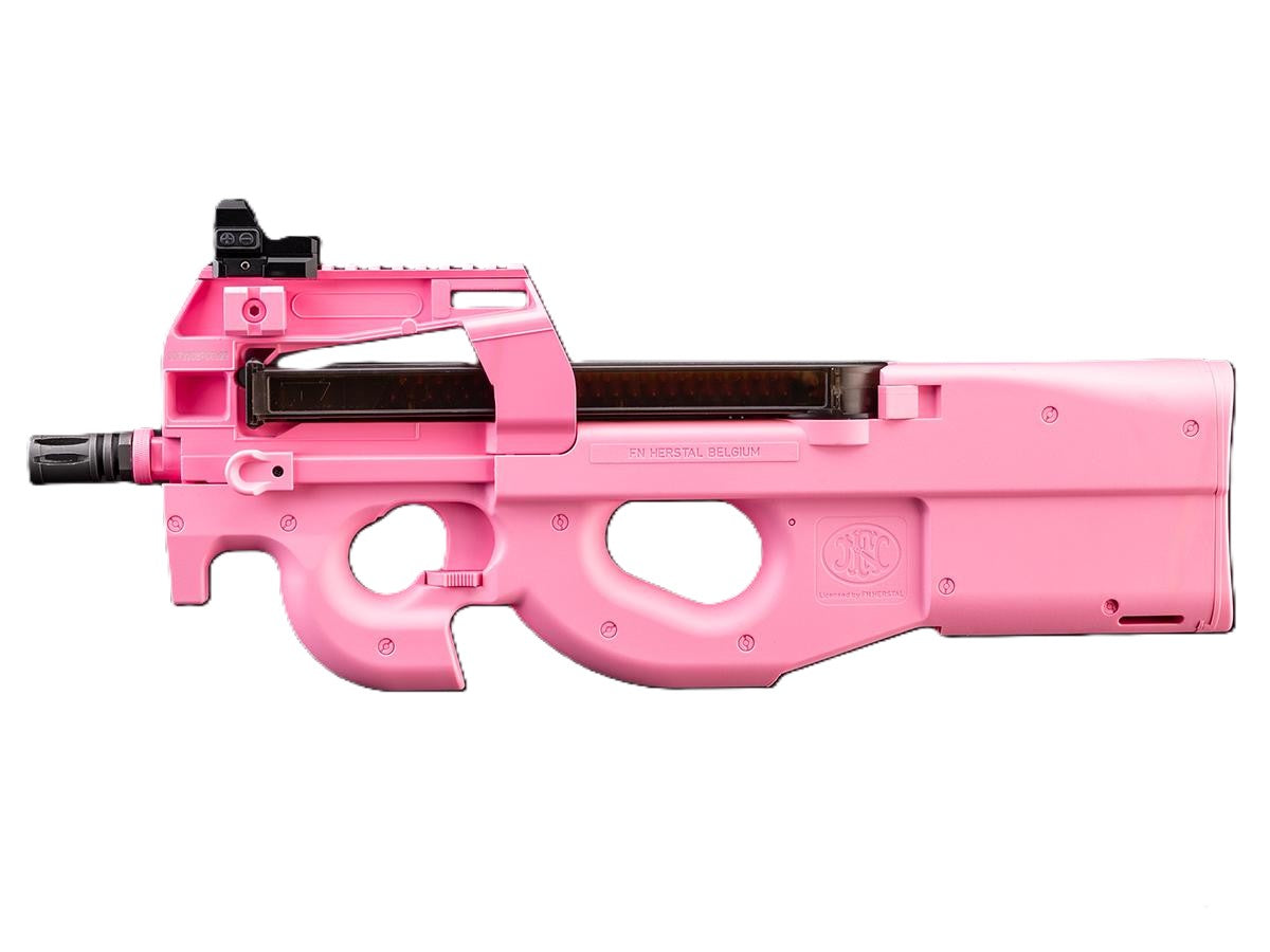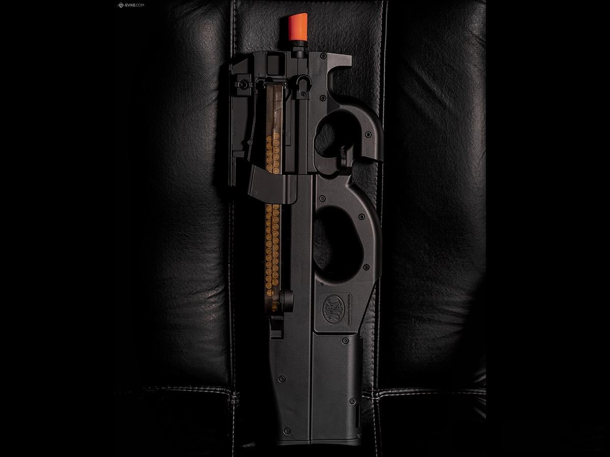 Developed in response to NATO requests for a compact but effective firearm for vehicle crews, support personnel, special operations, counter-terrorist units, and crew served weapon operators, the FN-P90 manages to excel in many of the categories FN-Herstal set out to achieve. The futuristic Personal Defense Weapon (PDW) / Sub-Machine Gun (SMG) entered production in 1990 and began service starting in 1991 and is continued to be used by militaries, law enforcement, and special operation groups around the world today. Chambered in the 5.7x28mm cartridge, the weapon far surpassed the 9x19mm weapons in performance and handling. The small caliber boasted greatly improved velocity at only half the weight of standard 9x19mm cartridges thus allowing the user to carry a great deal more ammunition into combat. Additionally, more rounds can be loaded into a magazine thanks to the cartridges relatively small diameter. Due to its incredibly high velocity, the 5.7x28mm cartridge fires at an exceptionally flat trajectory with roughly 30% less felt recoil which greatly improves accuracy even under fully automatic fire. The FN-P90s design came about after extensive ergonomic research; its small profile makes it ideal for tight, confined spaces as well as for personnel who require a concealable weapon. Featuring true-fully-ambidextrous controls, the FN-P90 is the first of its kind to be right handed and left handed shooter friendly without any modification or re-configuring of the firearm. The weapons charging handle, magazine release, and back up sights are symmetrically distributed on both sides of the firearm; the safety / fire control is located at the base of the firearms trigger which can be easily accessed with the thumb or index finger. The weapon also uniquely ejects spent casings downwards away from the users face which makes for a much more pleasant shooting experience when needing to transition from left to right and vice versa.