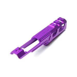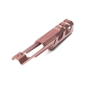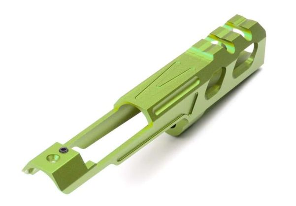 CNC-machined coloured slides to customize your SSP5 to the max! They have been manufactured in limited quantities, meaning you will almost certainly attract people’s gaze. The slides come with different patterns than the original and the extra threading on the included hop-up screw allows for even more sensitive hop-up adjustments.